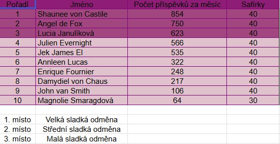 Odměny za umístění buď již máte, nebo budou postupně přistávat ve vašem majetku 🙂